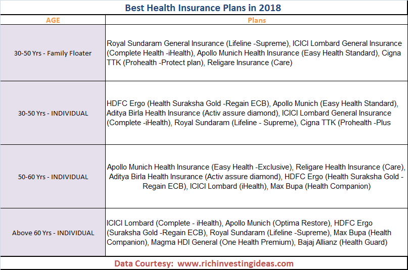 சிறந்த காப்பீடு திட்டங்கள் 2018 (Best Health Insurance Plans in 2018):