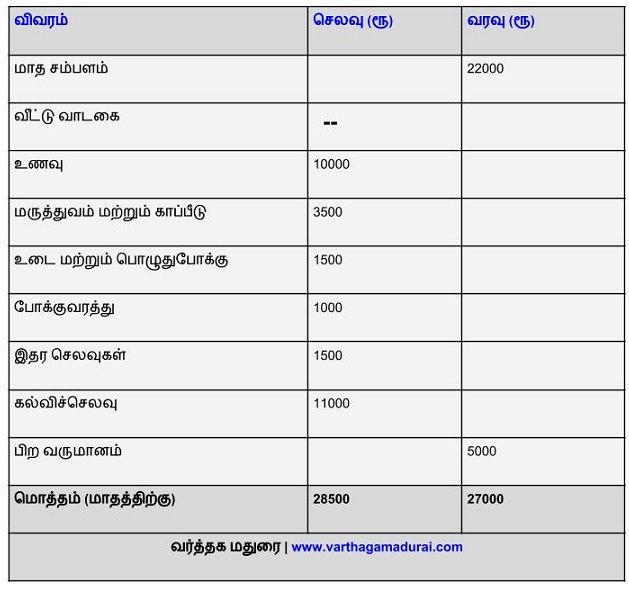 நம்மிடம் உள்ள பிரச்சனையே, நமக்கான வேலைகளுக்கு நேரமில்லை என சொல்வது தான். உண்மையில் நாம் யாரோ ஒருவருக்கு வேலை செய்வதில் அக்கறை கொள்கிறோம், அதுவும் மாத சம்பளத்திற்கு. அதே வேளையில், நமக்கான மற்றும் நமது குடும்பத்திற்கான பட்ஜெட் திட்டமிடலை(Budget Planning) செய்ய நாம் நேரம் ஒதுக்கும் போது, சேமிப்புகள் மற்றும் முதலீட்டு வாய்ப்புகள் நம்மை தேடி வரும். புதிய வருவாய்க்கான முயற்சியும் கைகூடும்.